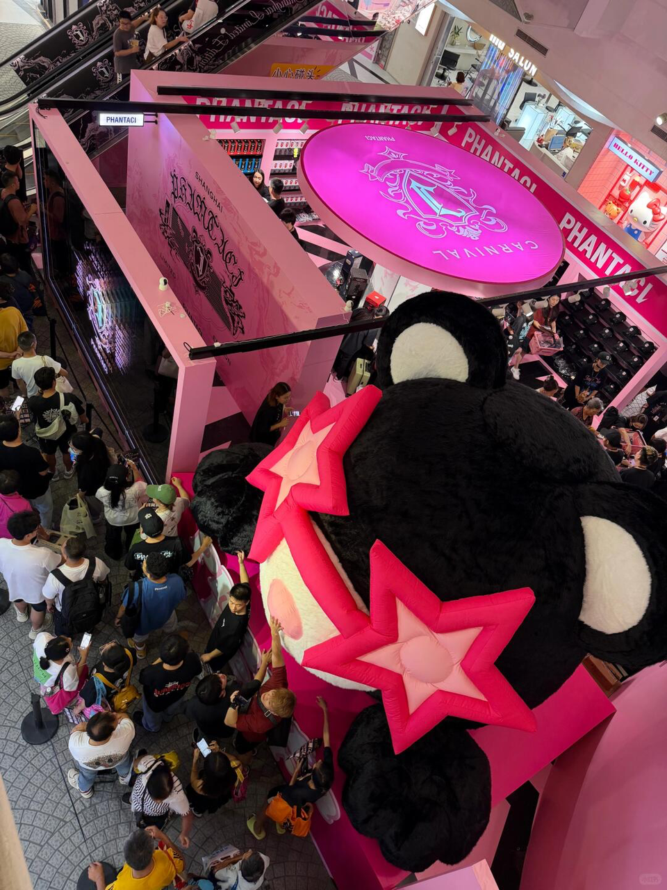 在10月9、10、11日为期三天的周杰伦「嘉年华」演唱会之前,从9月开始,上海就已化身为周杰伦「痛城」,粉色已然成为城市主色调之一。豆豆眼、浓眉、斜刘海的周杰伦卡通装置,出现在城市多个地点。PHANTACI快闪店所在的外滩金融中心,不断循环播放着周杰伦的音乐。